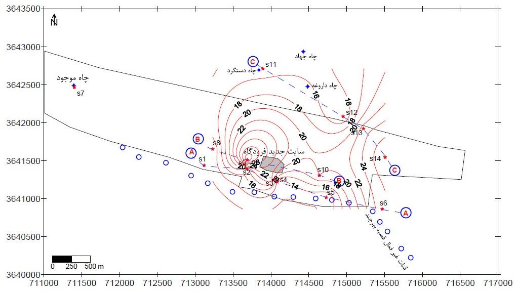 نقشه هم ضخامت آبرفت وارتفاع مطلق سنگ کف